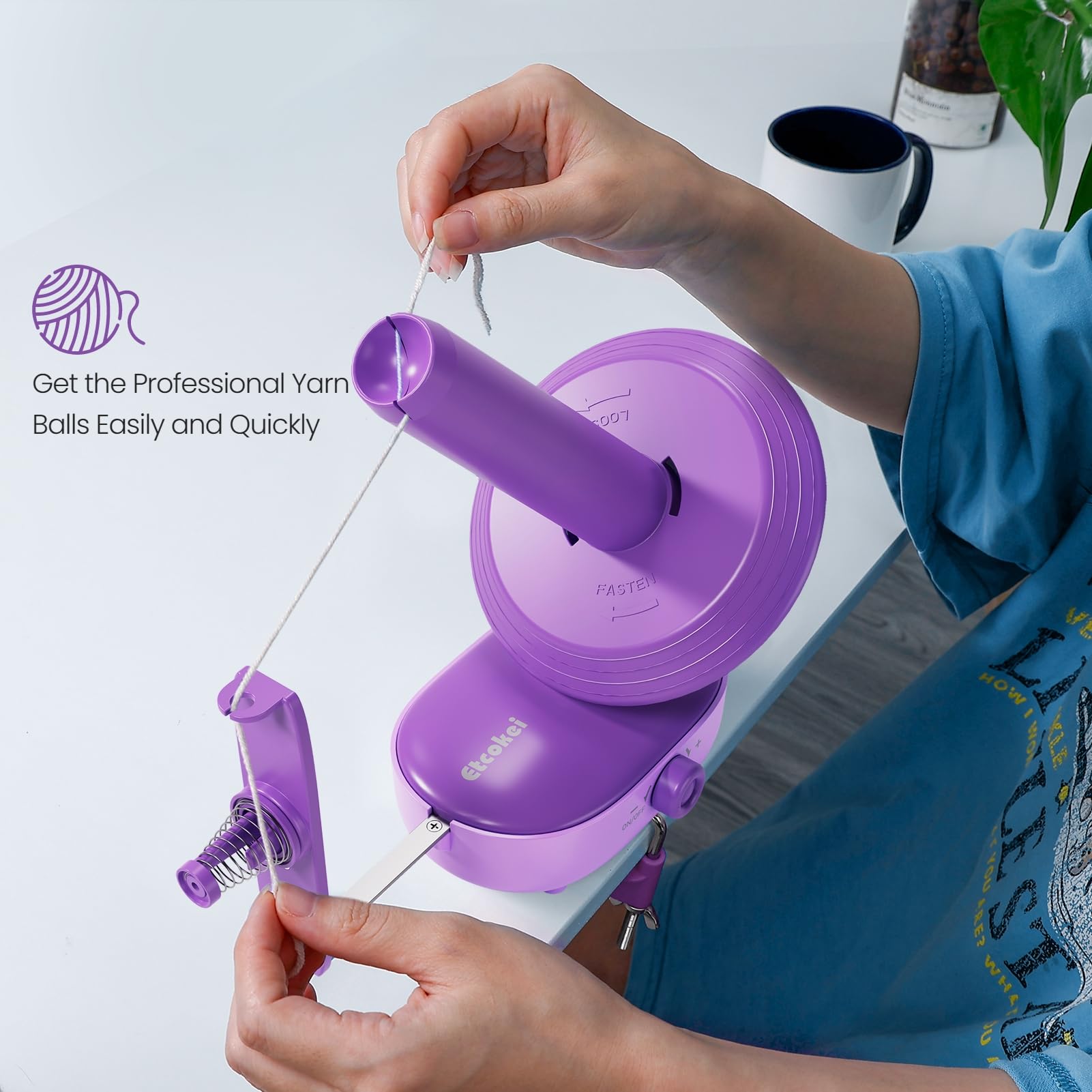 Efficient Automatic Winding: Say goodbye to tired hand-operated yarn winder, free your hands and prevent hand fatigue. This electric yarn winder features innovative design that automatically winder loose yarn into perfectly compact yarn cakes within minutes. Efficiently organize loose yarns into lovely yarn cakes with fun and save valuable time@Tight Yarn Cake Balls: Etcokei yarn cake winder is designed with dual spring, provides adequate tension for yarns, reducing yarn vibration during winding. No need to keep pulling the yarn by hand. Ensures smooth yarn ball winding, reducing yarn knotting and make yarn balls more beatiful and compact@Stepless Speed Control: You can adjust the winding speed according to your needs, accommodating different types of yarn and winding speed requirements for maximum efficiency. Our automatic yarn ball winder is designed to be both durable and flexible. Soft enough to ensure the low-noise, don't need to worry about causing any disturbance to your families and neighbor@Large Capacity & Compact Body: Our yarn winder can effortlessly wind yarns up to 7oz large capacity, end up a beautiful cake ball, from delicate lace to bulky weight. Our winder can handle more than 2 times yarns than traditional winder. Greatly improved efficiency. A sweet helper for knitters and crocheters. This mini yarn winder's body occupying a small space on the table, convenient for storage and travel@Best Helper for Yarn Lovers: This compact yarn winder is perfect helper for yarn craft enthusiast. It is an excellent present for yourself and family or friends, perfect for home, workshops, and all knitting enthusiasts, good for kids and adults creat more DIY creative project. The yarn spinner is crafted from sturdier ABS+POM, ensures a longer lifespan and enhanced durability